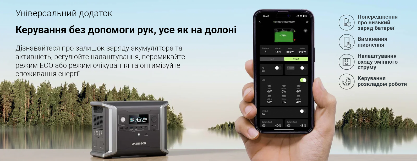 - Гнучке управління станцією через додаток Dabbsson