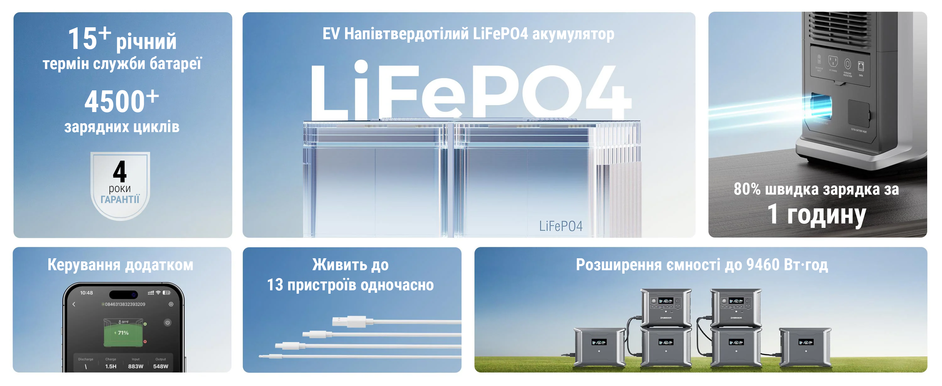 | Тип акумулятора | LiFePO4 |