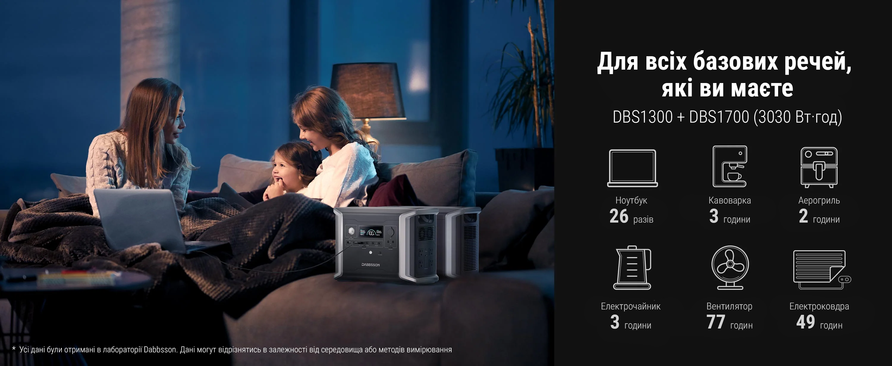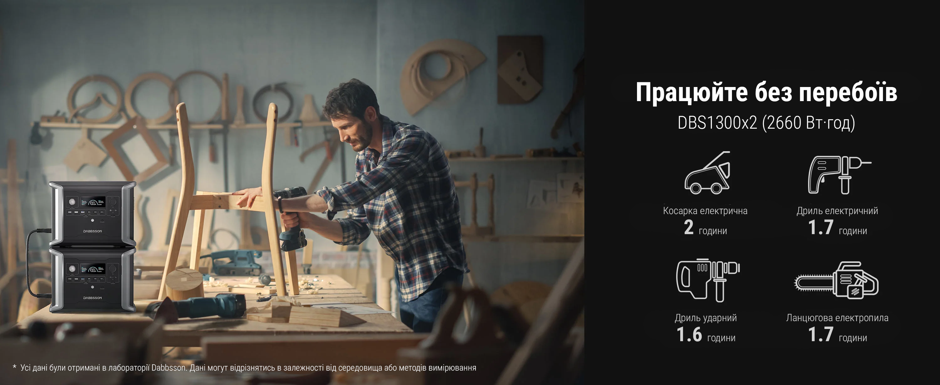- Зарядна станція Dabbsson DBS1300 +DBS1700 / 3030 Вт·год / 1200 Вт